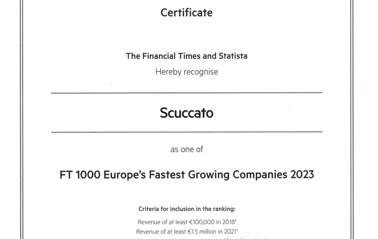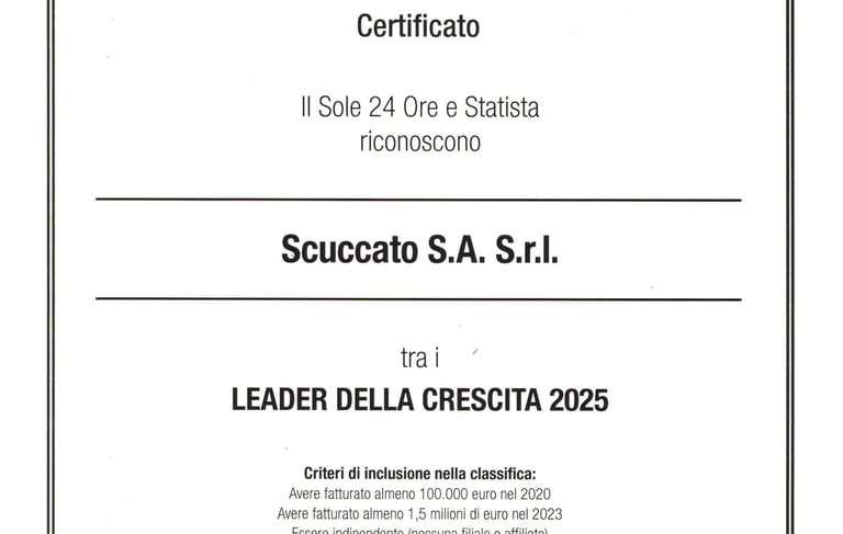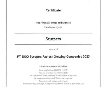 Un riconoscimento particolarmente prestigioso che colloca Scuccato S.A. tra le realtà imprenditoriali più dinamiche e performanti a livello europeo, i risultati testimoniano la capacità di crescere, innovare e affrontare le sfide più complesse del settore.