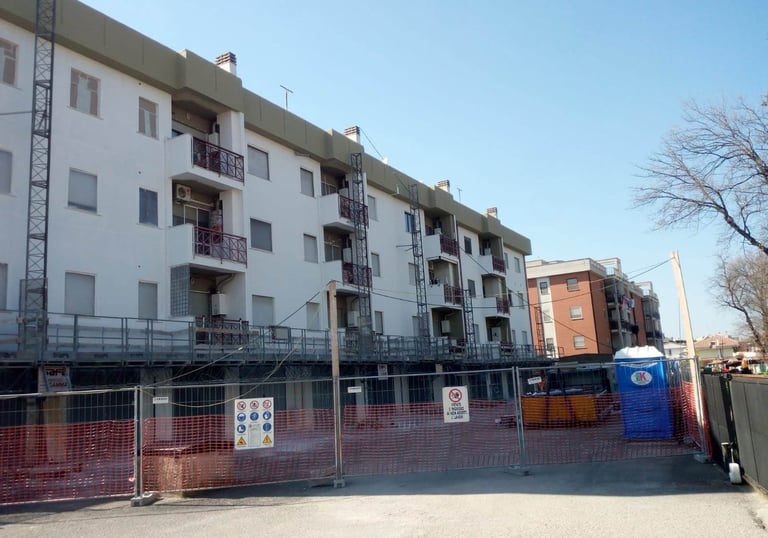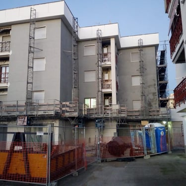 Facciate, balconi, cappotti termici, manutenzioni e opere sulle parti comuni. Disponiamo di ponteggi fissi, autosollevanti e piattaforme aeree.